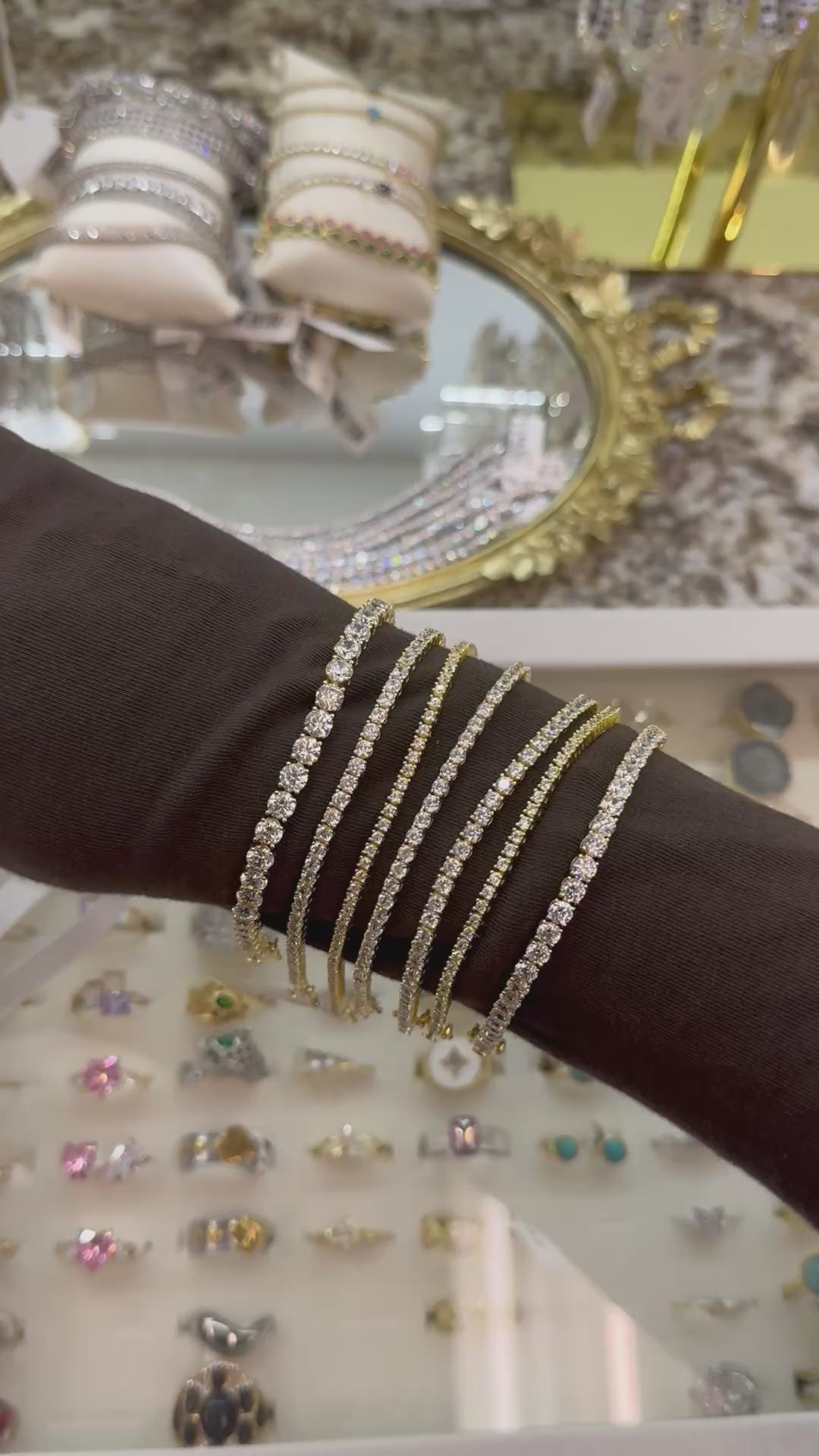 3MM CZ sterling silver 4 Prong Gold Tennis Bracelet 7"