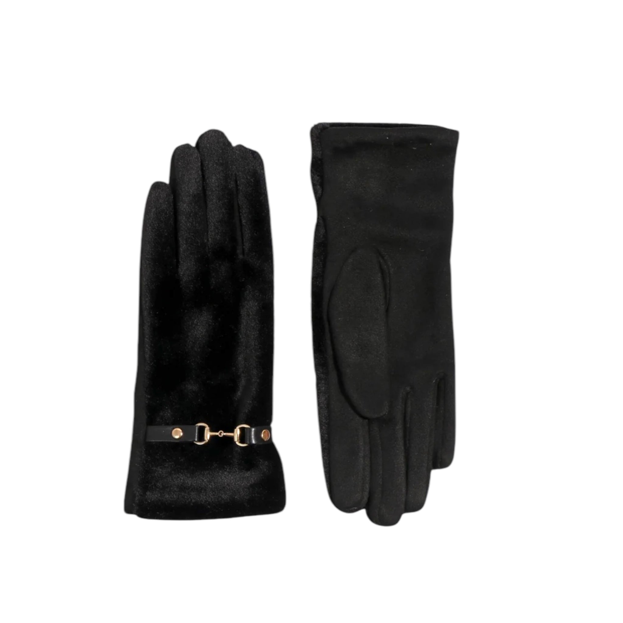 Black Faux Fur Gloves with Buckle Embellishment and Cozy Lining