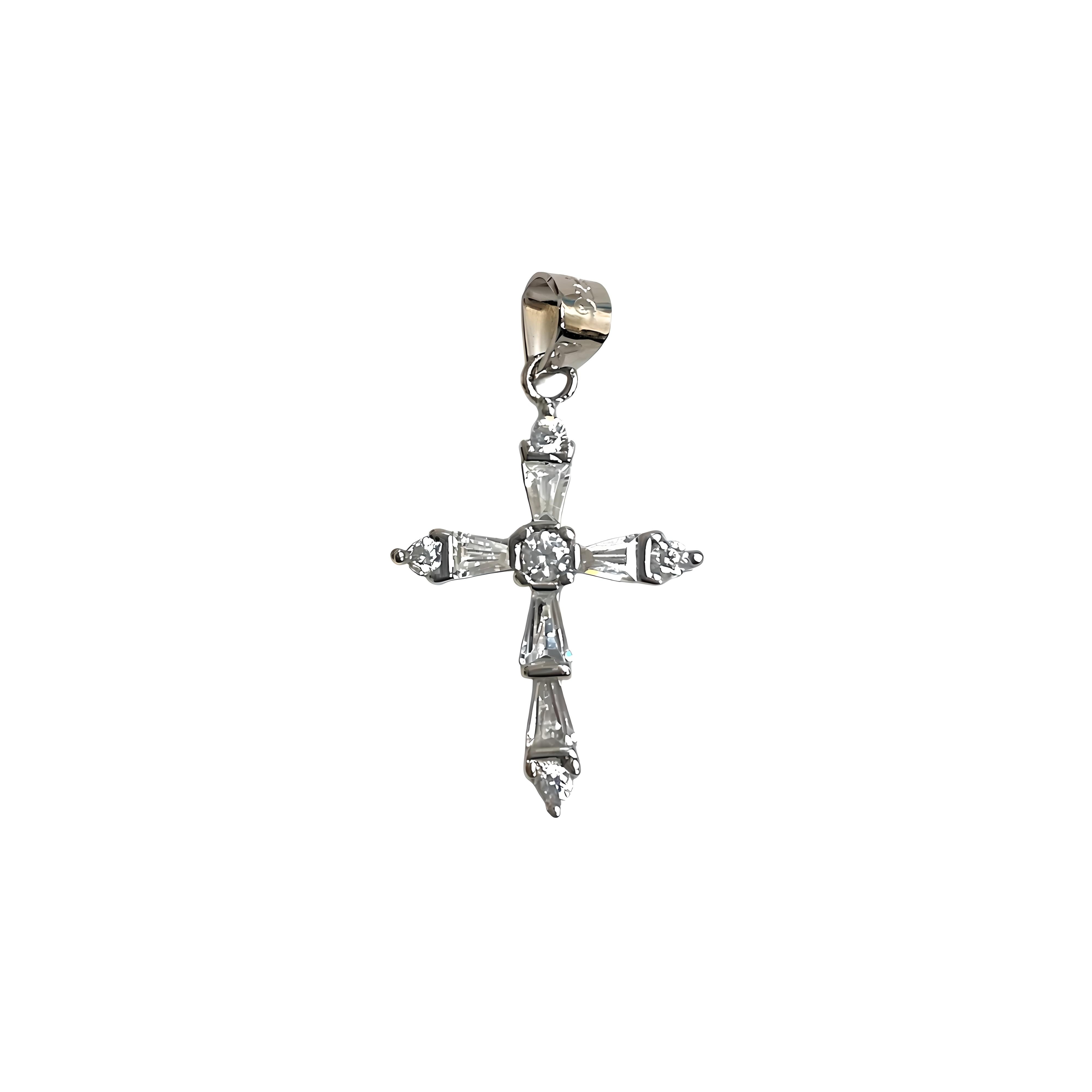 Add a touch of divine sparkle to your style with our CZ Cross Charm. Crafted from sterling silver, this charm radiates elegance and faith. Perfect for any occasion, it's a must-have addition to any collection. Get your shine on with our CZ Cross Charm!