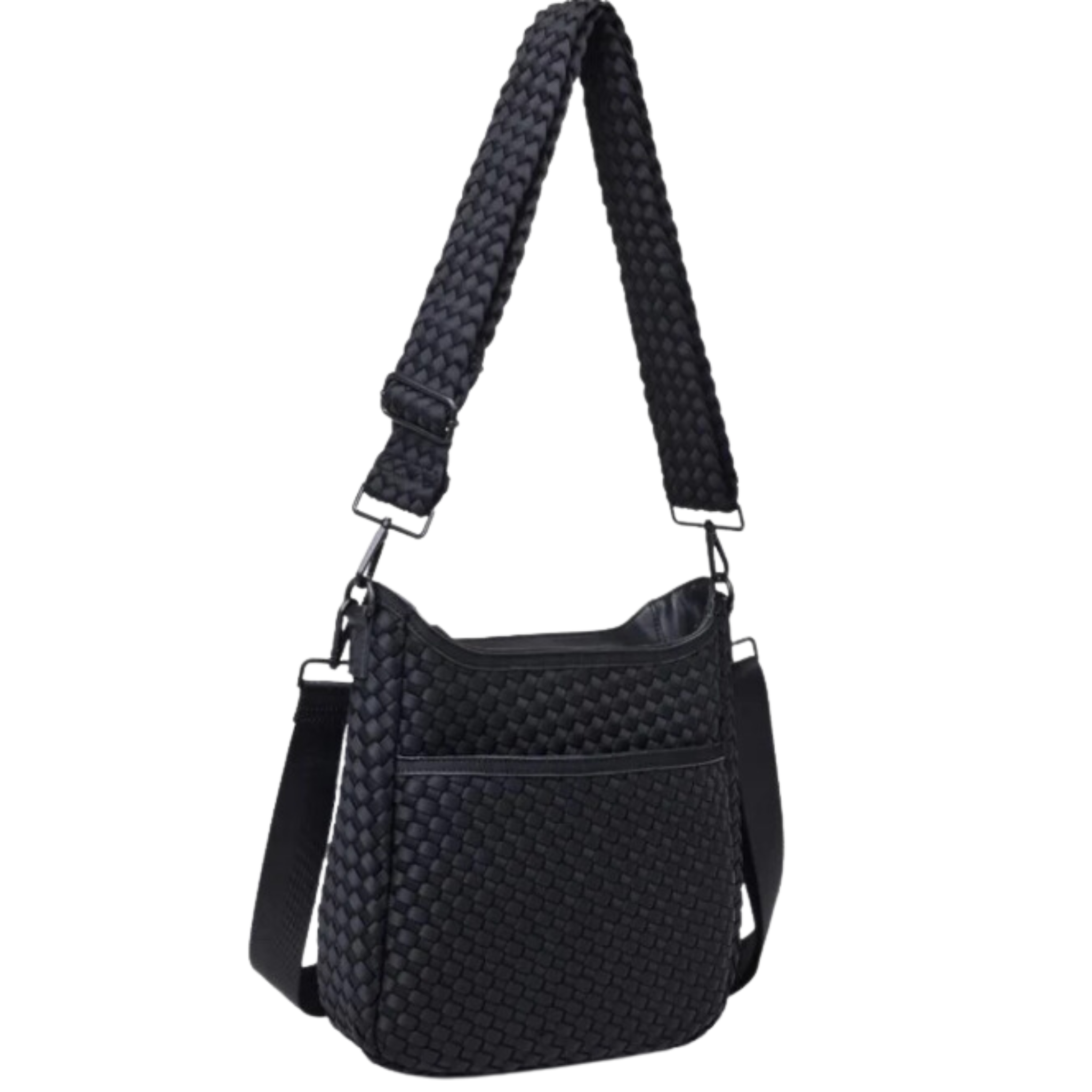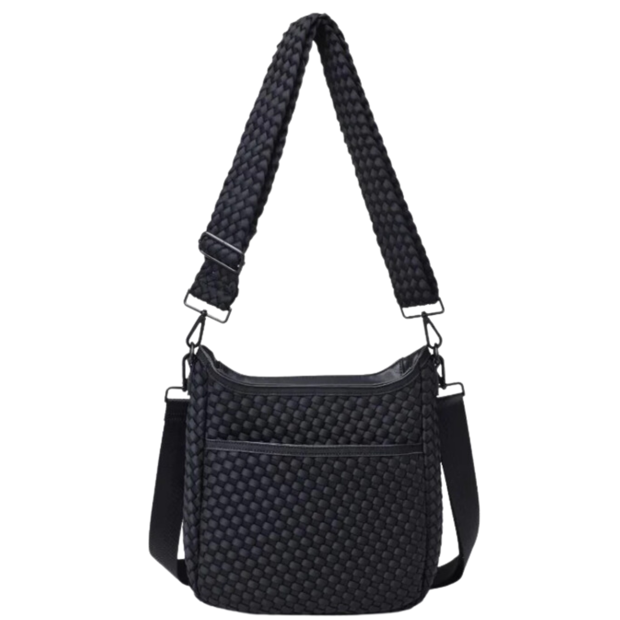 Introducing our Kismet Neoprene Crossbody – the perfect blend of style and practicality. Featuring a sleek woven exterior with tonal hardware and a convenient front slip pocket, this bag is designed for your on-the-go lifestyle. Inside, the water-repellant nylon lining keeps your essentials safe, complete with one zip pocket and two slip pockets for optimal organization.
