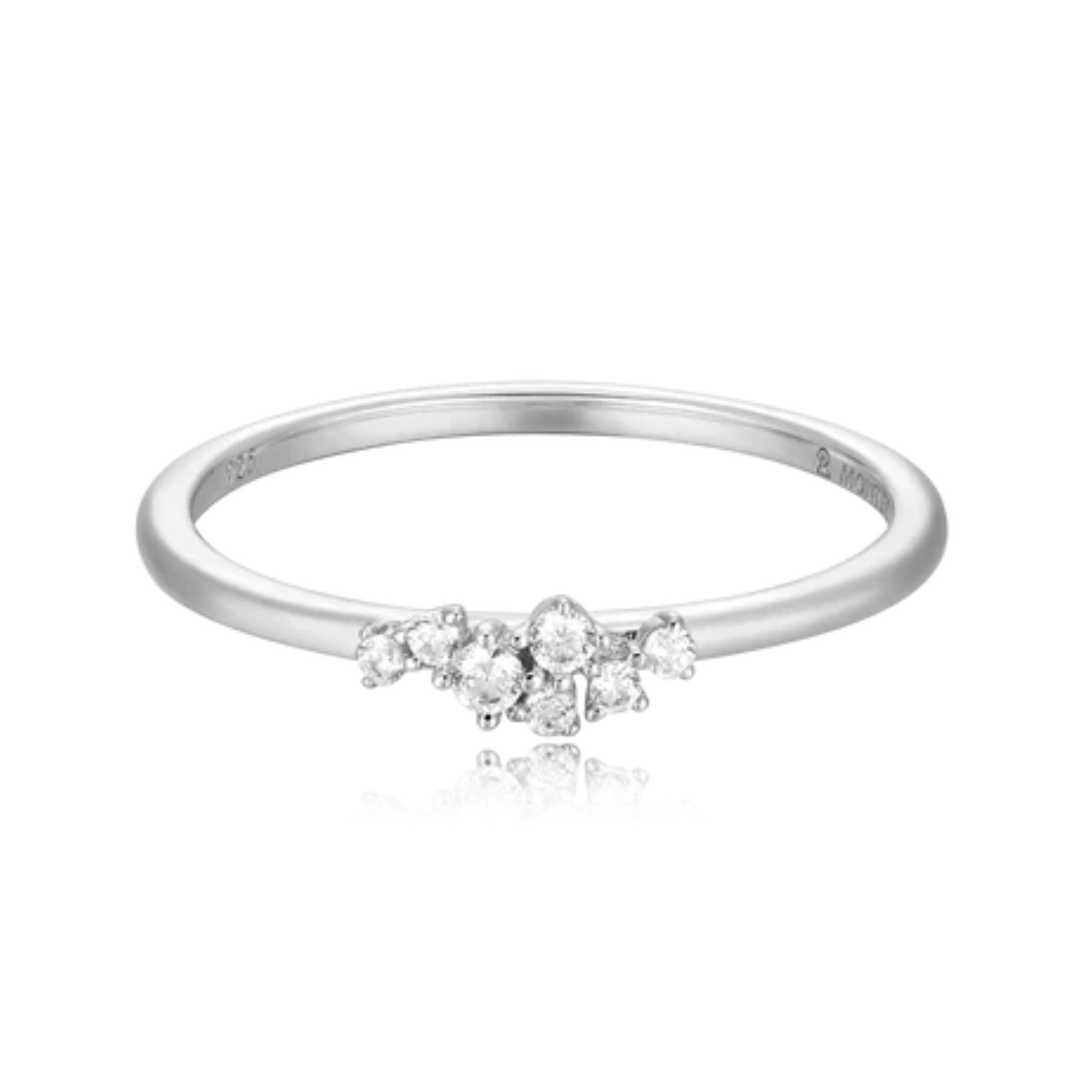 Lab Created Diamond Scatter Stackable Ring in Rhodium Plated Sterling Silver