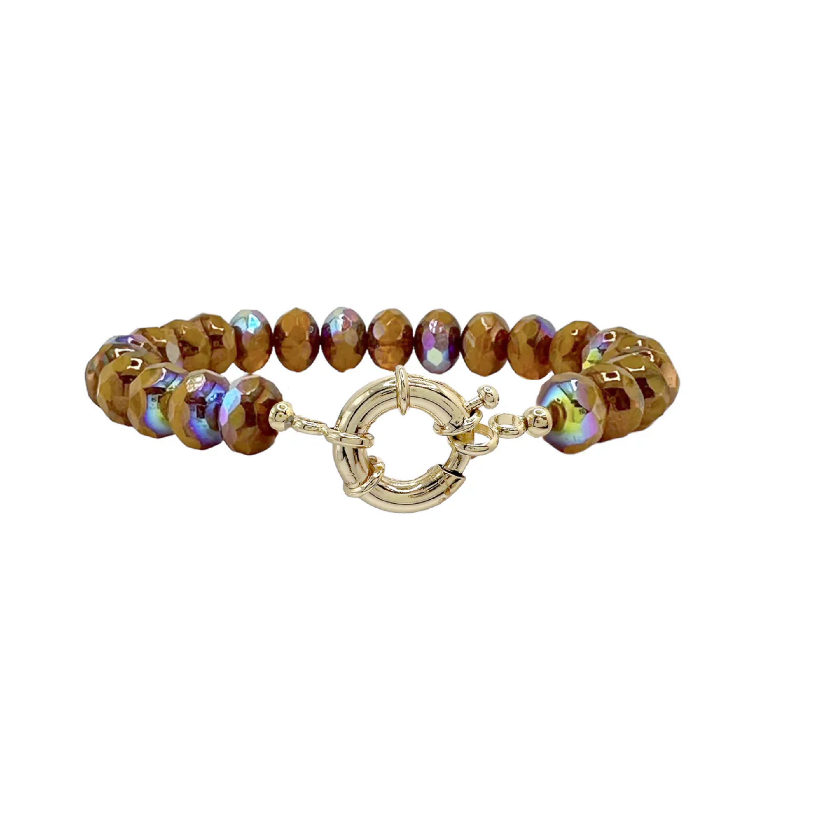 Introducing the vibrant Hailey Clasp Beaded Bracelets, inspired by the Pantone Color Collection for Fall/Winter 2024. These stunning crystal bracelets measure 6.85" and feature a variety of rich, earthy tones that reflect our deep connection to nature. The stunning clasp in the front is the perfect touch of togetherness. With an elastic design, these bracelets are both fun and functional, perfect for the conscious consumer