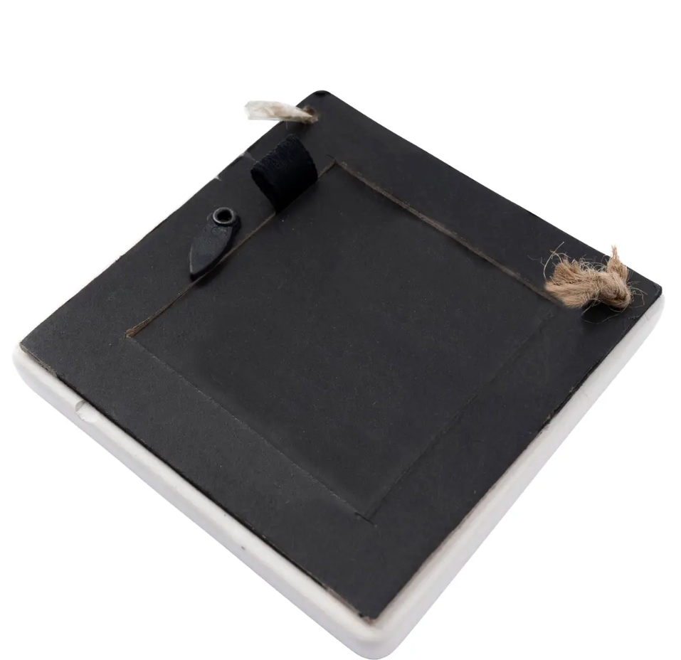 A Beautiful Design | A lovely mini ceramic hanging photo frame in cream with a hand painted design of a country cottage. Jute ribbon for hanging. Slogan reads