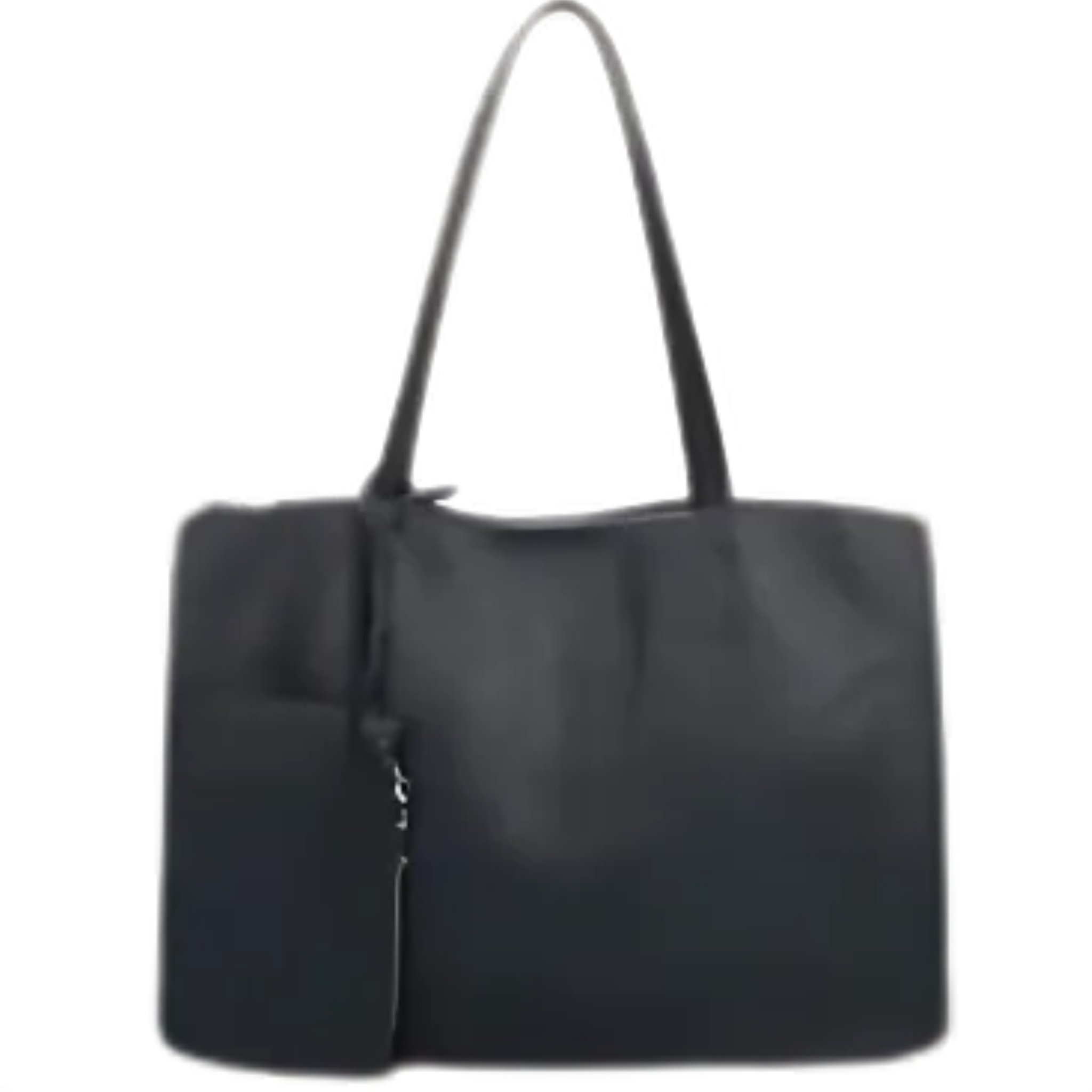 Large Synthetic Bag with 3 Interior Compartments + Extra Coin Purse with Zipper Closure for Women. Material: Synthetic. Main Closure: Zipper. Bag Interior: Large capacity. Two unique compartments with button closure. The central compartment with zipper closure is lined. Coin Purse Interior: Single compartment. Bag Dimensions: 41 x 11 x 38 cm. Coin Purse Dimensions: 17 x 11 cm. Base: Flat. More Surprises: Comes with 2 long handles and 1 adjustable and removable shoulder strap.