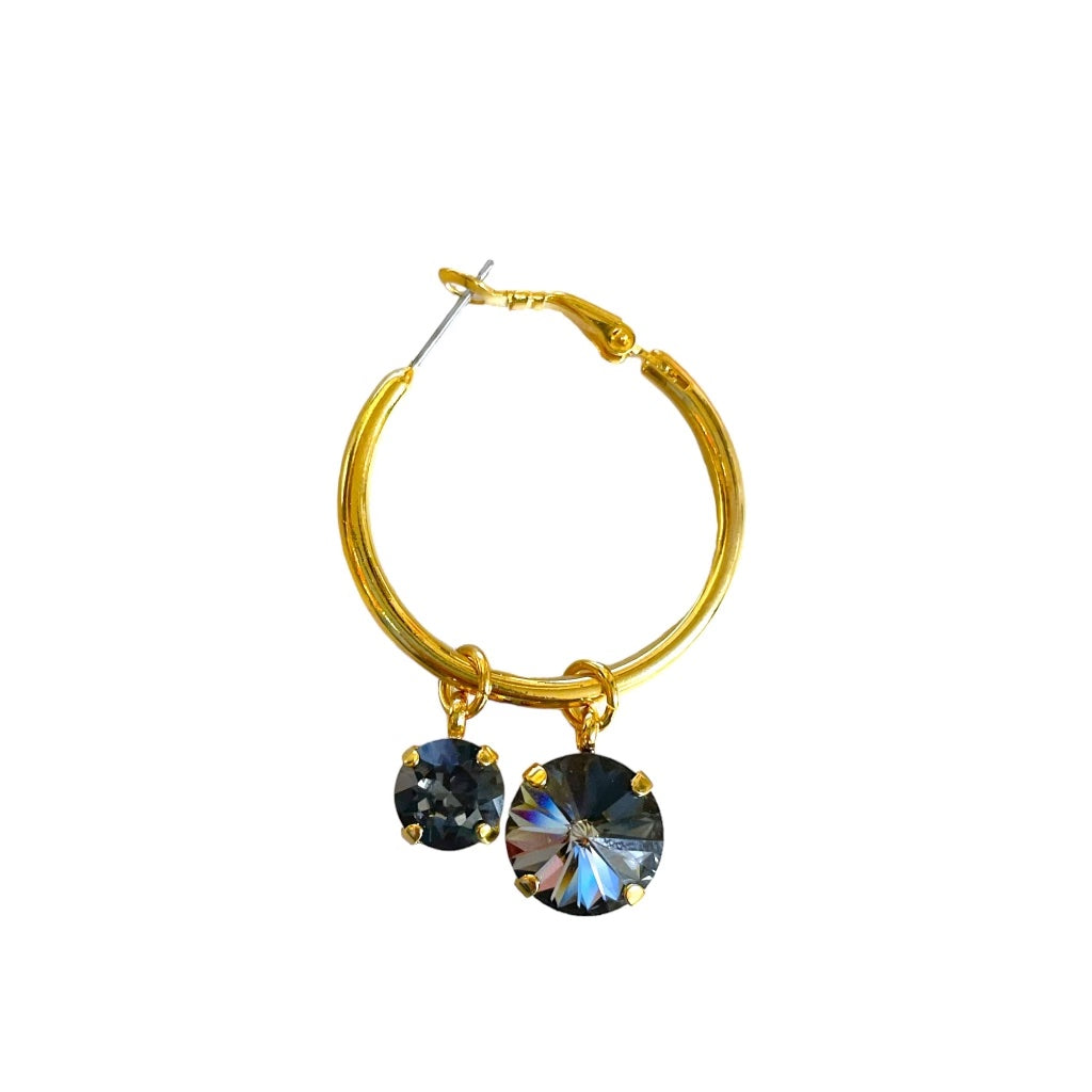 Elevate your style with our Black Patina Crystal Charm! This elegant charm can be used on hoops or necklaces, adding a touch of sophistication to any outfit. The black patina finish and sparkling crystal will catch eyes and make a statement. Make a bold fashion statement with this must-have accessory.