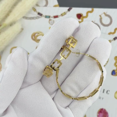 Link Hoop Earrings, 18K Gold Plated Steel