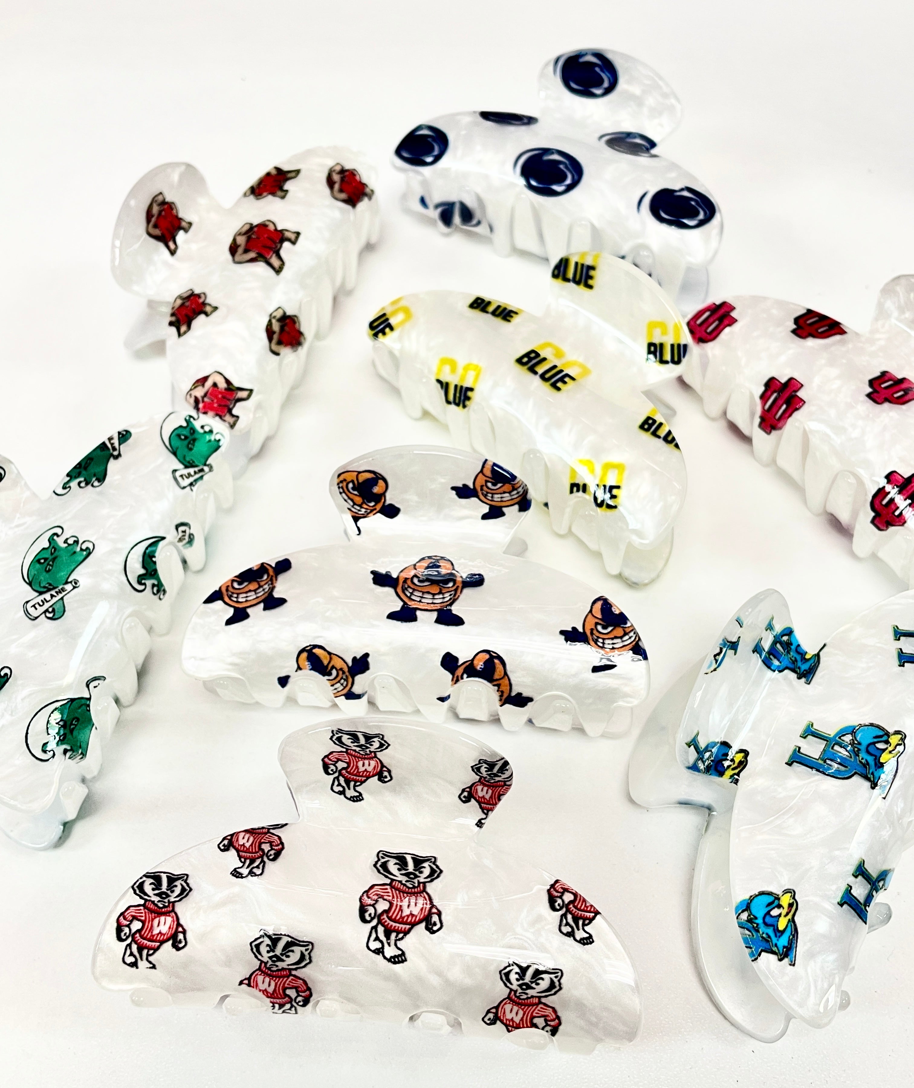 Introducing our College Hair Clips, the perfect accessory for any sophisticated co-ed. These luxurious hair clips are crafted with the highest quality materials, ensuring they will last through late nights of studying and early morning classes. Elevate your hairstyle and look with these exclusive College Hair Clips.