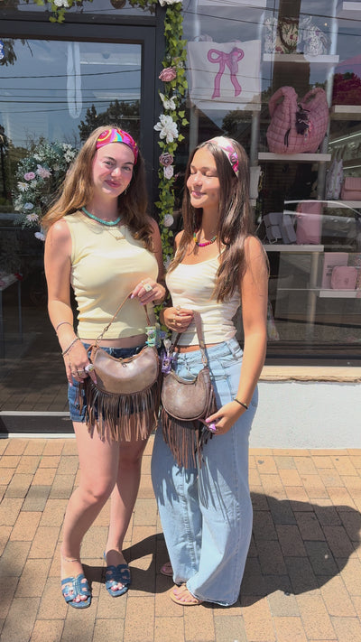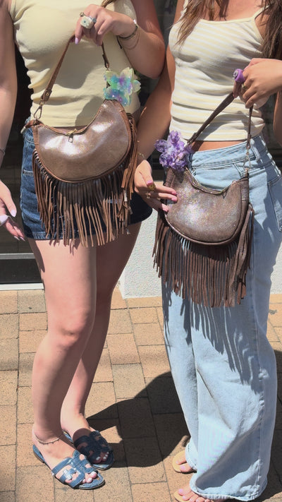 Liora Glossy Glitter Fringe Crossbody