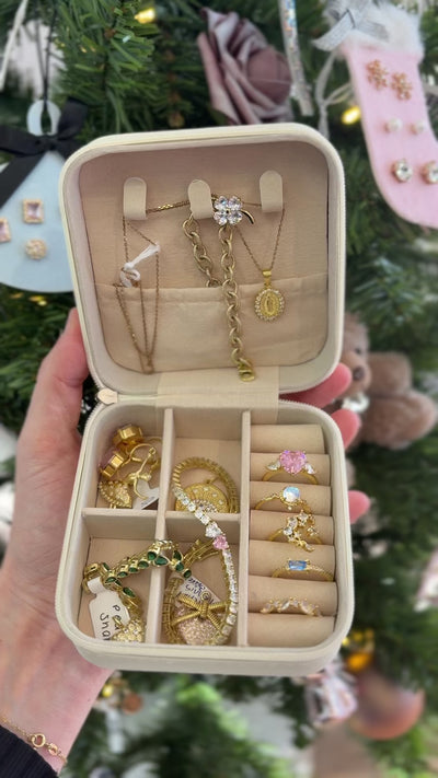 The structured, zip-around design opens to a plush interior with multiple compartments, keeping your pieces safe, tangle-free, and easy to find. Lightweight and compact, it slips perfectly into your purse, luggage, weekender, or tote — making it a must-have for travel, gifting, and everyday organization.