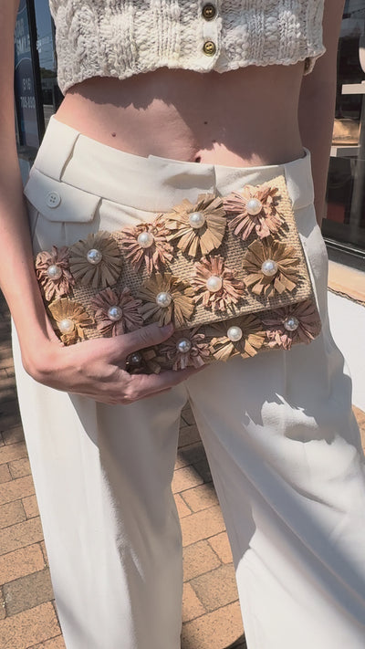 Jute Raffia with Pearls Clutch