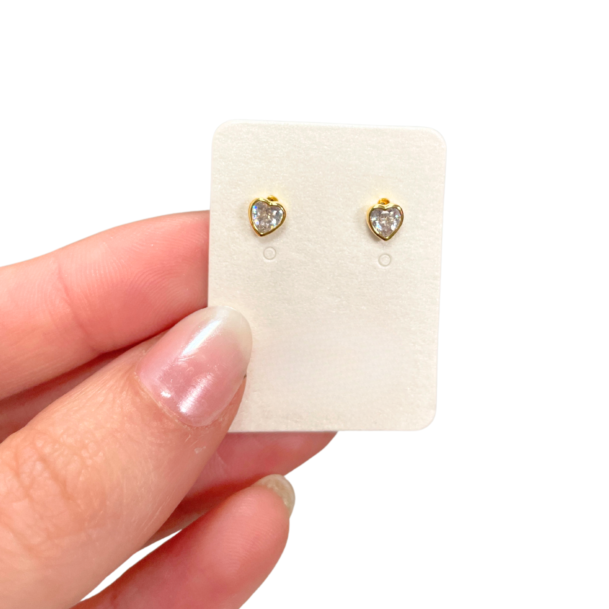 Embellish any outfit with these adorably quirky Mini Clear Heart CZ Studs! Featuring delicate heart-shaped cubic zirconia studs, these earrings add a touch of fun and charm to your look. A versatile accessory for any occasion, these studs are sure to bring a smile to your face (and others)!