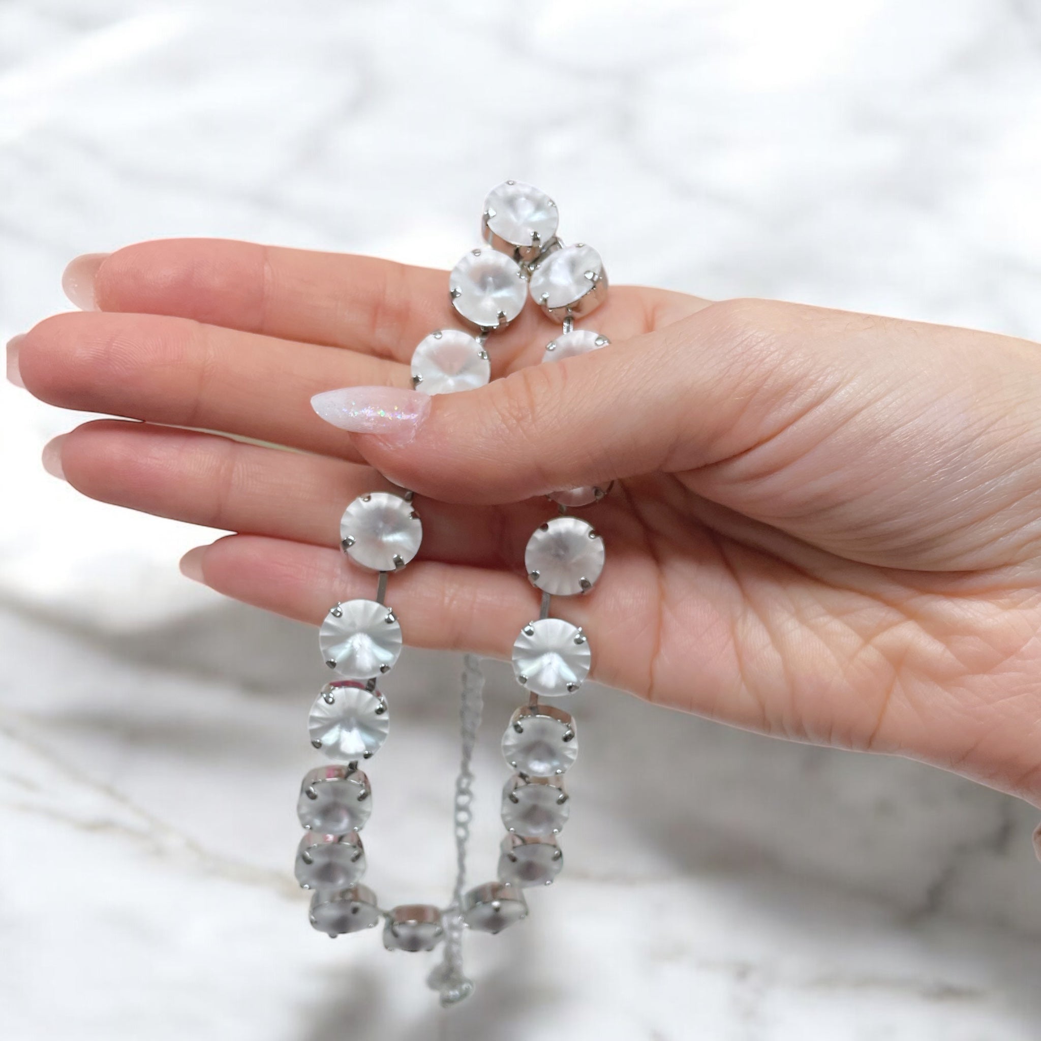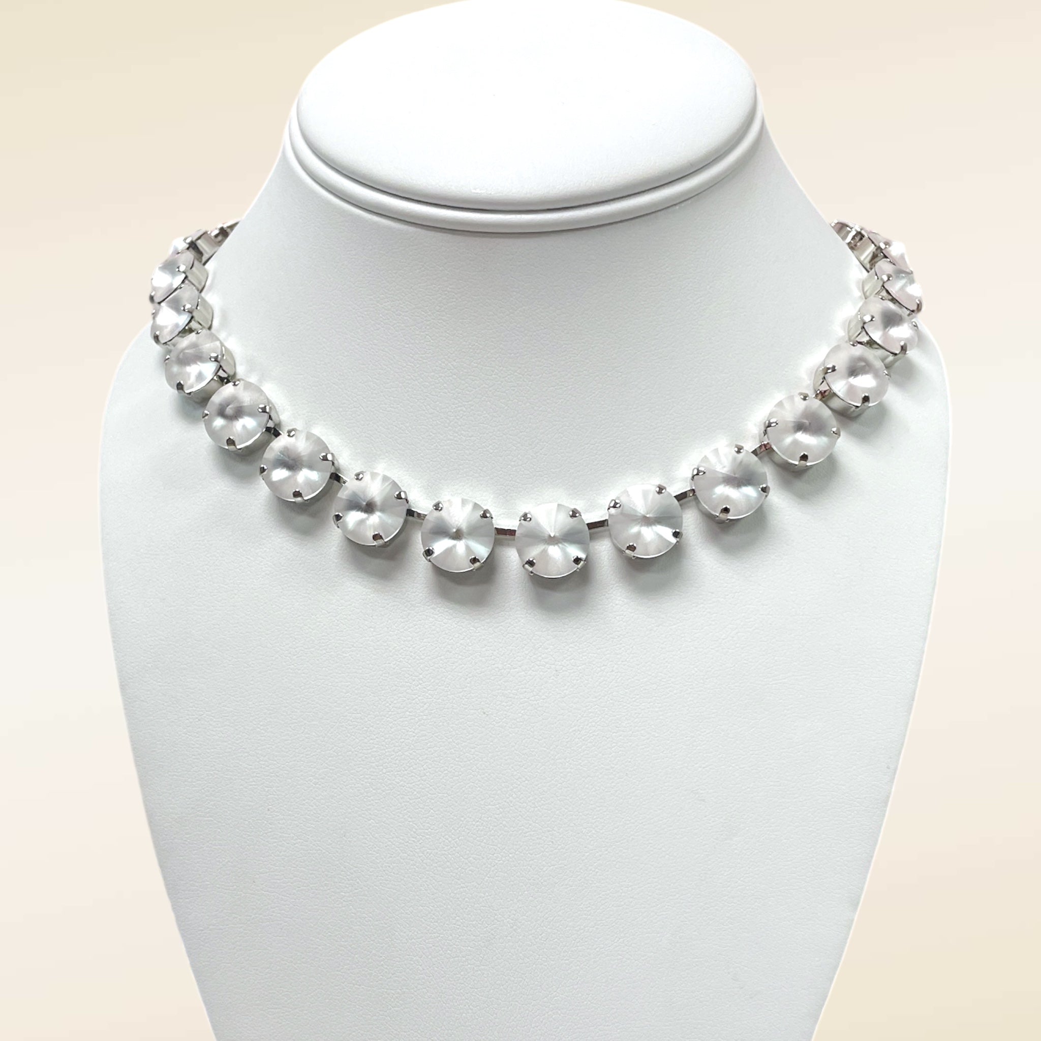 Indulge in the luxury of our Finest Crystal 12MM Frosty White Necklace. This exquisite piece features the highest quality crystals, radiating a frosty white hue. With its delicate 12MM size, this necklace is perfect for adding a touch of elegance to any outfit. Elevate your style with our finest crystal necklace.